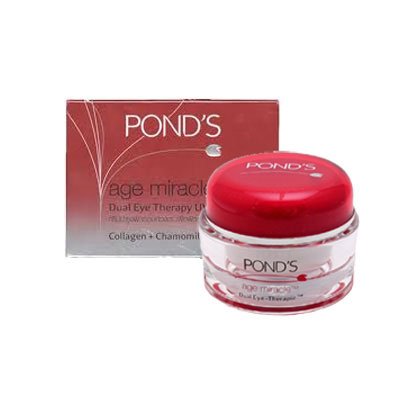 Pond's Age Miracle Dual Eye-Therapy Cream contains two creams, one for your eyelids, and one for the skin below your eyes. A complete, dual formula solution with sun-shields, to fight the aging signs in specific areas around your eyes. Upper Eye Collagen Cream helps reduce lines, wrinkles and crow's feet.